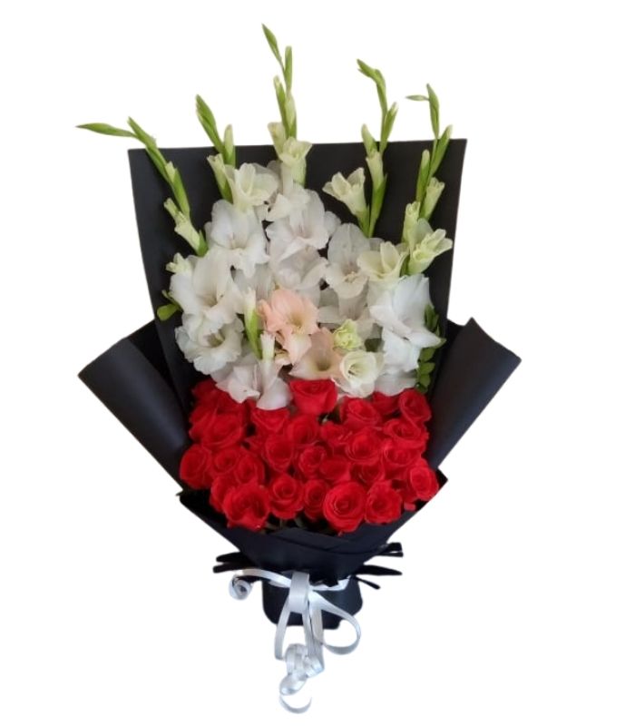 Red Roses With White Gladiolus